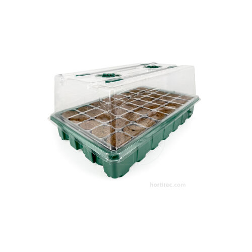 Este propagador ha sido diseñado para facilitar el arranque de tus cultivos en interior, ya sea germinando semillas o enraizando esquejes. Integra dos barras LED de 22W que ofrecen una iluminación eficiente y ajustable. A través de su control digital, puedes modificar la intensidad de luz, seleccionar el tipo de espectro y programar su funcionamiento en ciclos de 3, 9, 12 o 24 horas. La cúpula transparente y rígida conserva de forma eficaz la humedad y el calor, creando un entorno estable que favorece el desarrollo de las plantas. Además, sus ventanas de ventilación regulables permiten mantener el equilibrio perfecto entre temperatura y humedad en todo momento. Confeccionado con materiales duraderos y fáciles de mantener, este propagador es compatible con múltiples sustratos como lana de roca, jiffys o bandejas. Una herramienta esencial para cualquiera que cultive en casa o practique horticultura de interior.