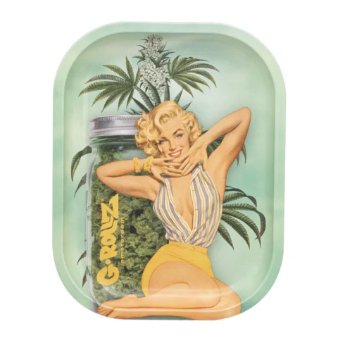 Bandeja de metal con diseño de Marilyn Monroe, compacta y perfecta para agregar un toque de glamour a tu área de fumado.