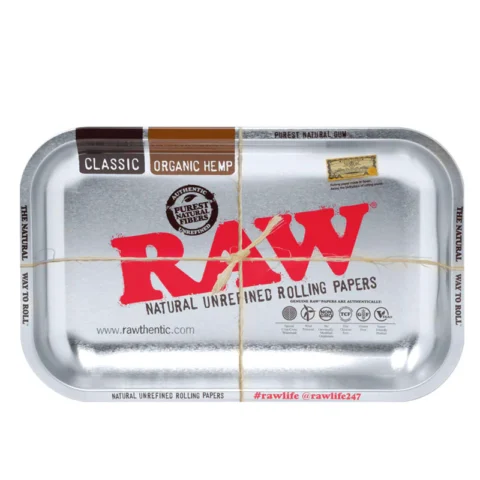 Bandeja de metal en color plata de RAW, tamaño grande para manejar todos tus accesorios con facilidad.