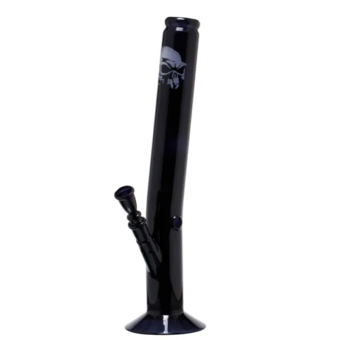 Bong de cristal con diseño de calavera negra, 42 cm de alto, ideal para quienes buscan un diseño audaz y un rendimiento excepcional.
