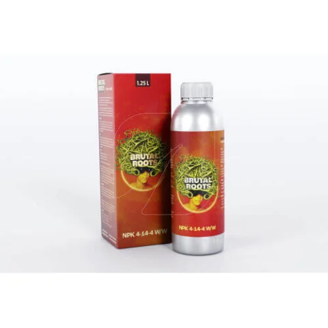 Brutal Roots es un potente estimulante de raíces diseñado específicamente para optimizar el cultivo de cannabis. Con una concentración destacada de NPK (4-14-4) y enriquecido con aminoácidos, oligoelementos y extractos vegetales, este producto asegura un inicio vigoroso para tus plantas de marihuana. El fósforo, un componente crucial, desempeña un papel esencial en la energía celular y en la formación de ADN, vital para un sistema radicular fuerte y saludable.