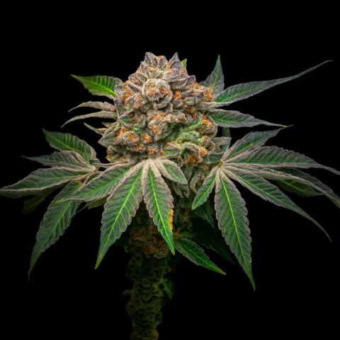 Cogollos compactos, pesados y cubiertos de tricomas como escarcha, pensados para quienes buscan una experiencia seria, profunda y de estilo clásico Kush.