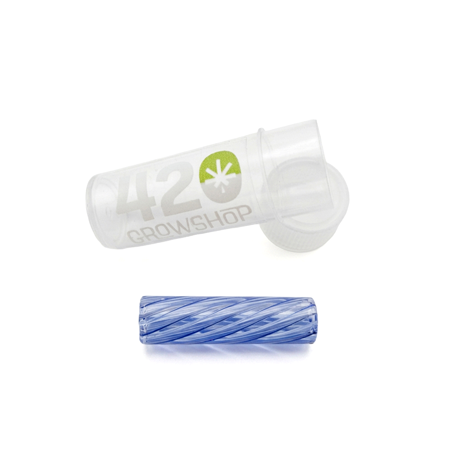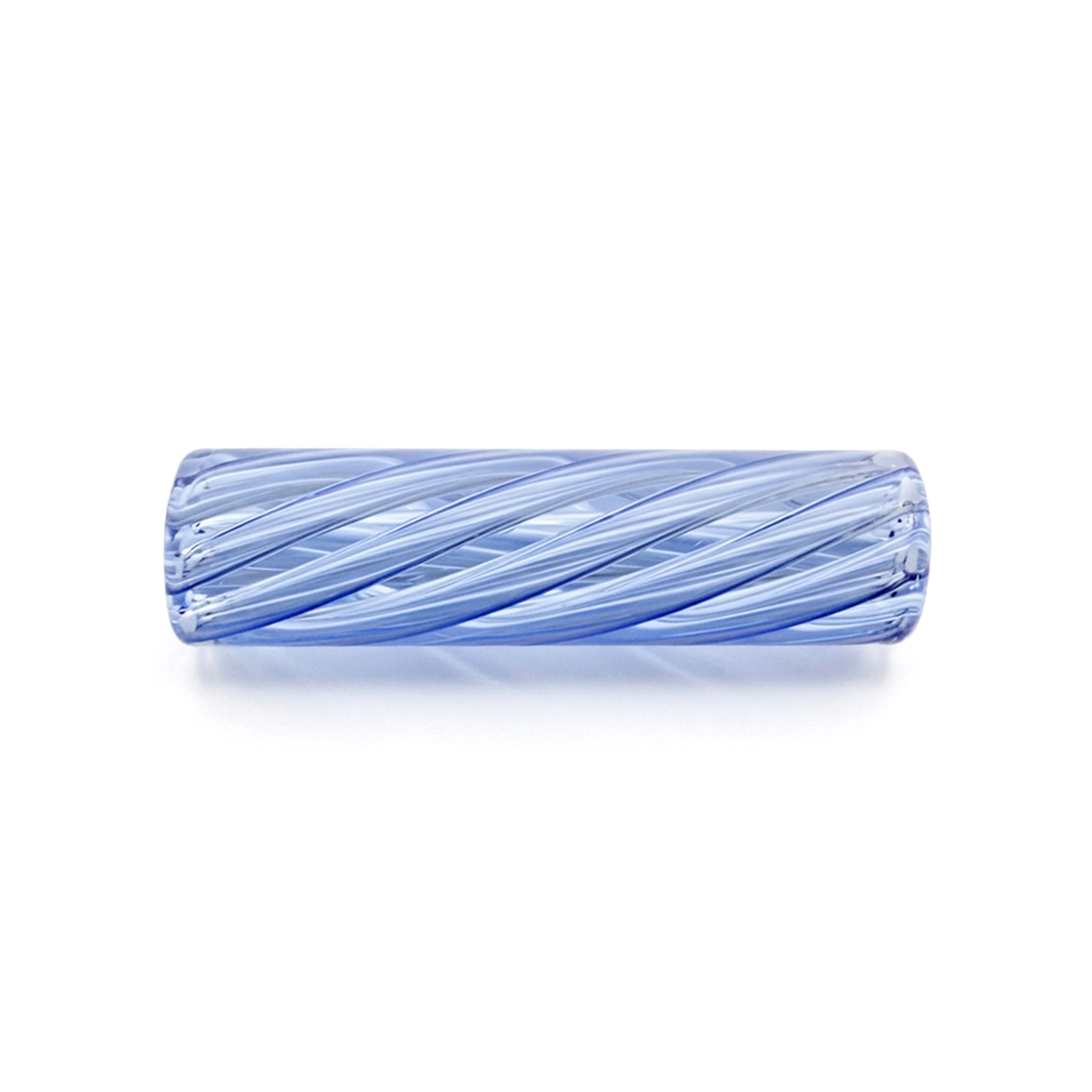 Boquilla de cristal reutilizable con diseño interior en espiral y acabado verde translúcido.