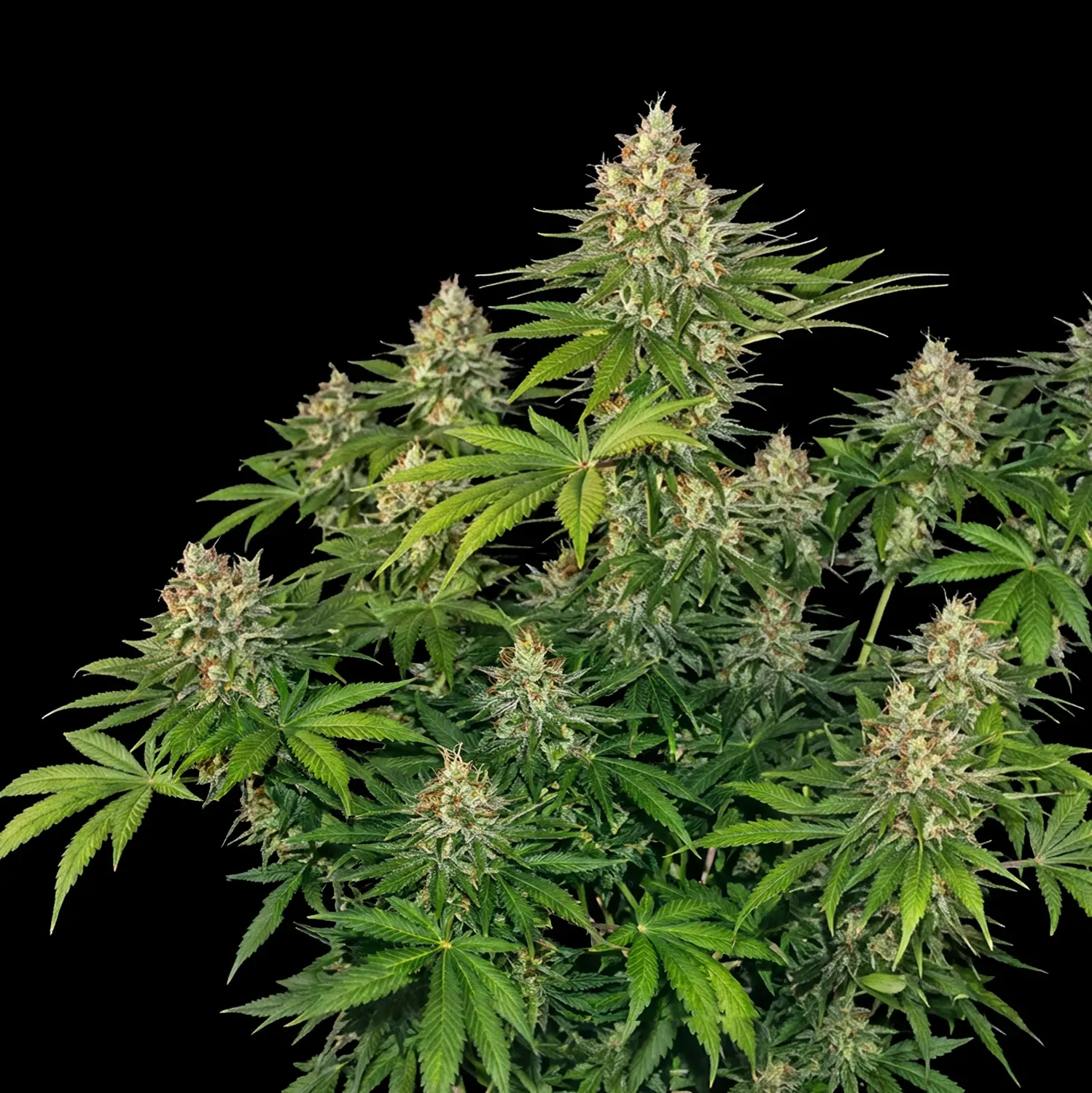 Cogollos compactos, pesados y cubiertos de tricomas como escarcha, pensados para quienes buscan una experiencia seria, profunda y de estilo clásico Kush.