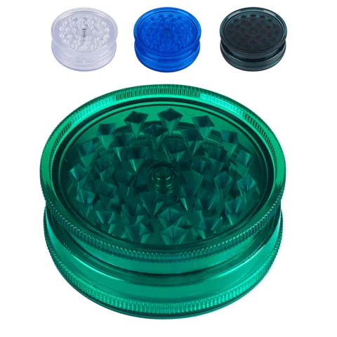Grinder de plástico con tapa de depósito de 60 mm, ideal para almacenar y moler tus hierbas con facilidad y discreción.