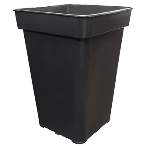 Maceta de diseño cuadrado optimizado para maximizar el espacio en cultivos. Fabricada en plástico resistente, favorece un drenaje eficiente y una óptima aireación de las raíces, promoviendo un crecimiento saludable de las plantas.