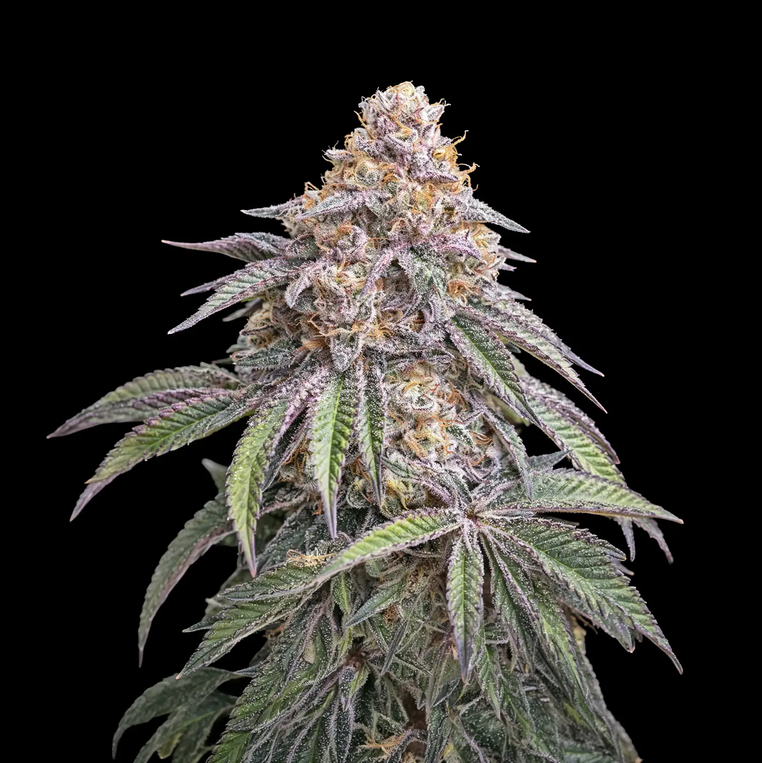 Cogollos compactos, pesados y cubiertos de tricomas como escarcha, pensados para quienes buscan una experiencia seria, profunda y de estilo clásico Kush.