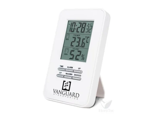 El Termohigrómetro Digital Vanguard Hydrop es una herramienta indispensable para monitorear las condiciones ambientales en tu espacio de cultivo. Este dispositivo mide con precisión la temperatura y la humedad, proporcionando datos esenciales para mantener un entorno óptimo para el crecimiento de tus plantas. Equipado con una pantalla digital clara y fácil de leer, permite un seguimiento continuo y en tiempo real de las condiciones climáticas. Su diseño compacto y funcional se adapta a cualquier configuración de cultivo, asegurando que puedas tomar decisiones informadas para mejorar la salud y el rendimiento de tus plantas. Con el Termohigrómetro Digital Vanguard Hydrop, controla y optimiza tu entorno de cultivo de manera eficiente y efectiva.