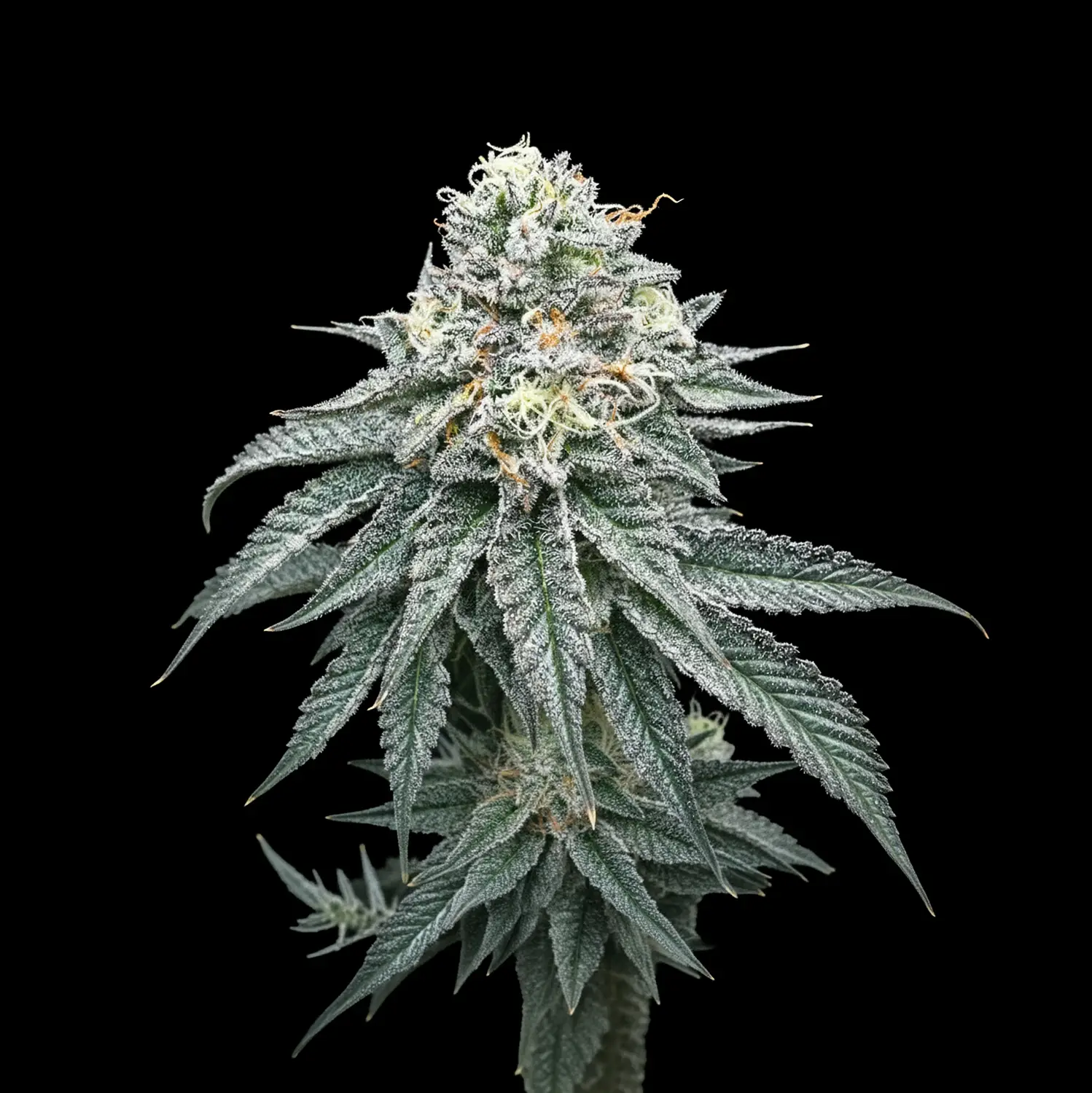 Cogollos compactos, pesados y cubiertos de tricomas como escarcha, pensados para quienes buscan una experiencia seria, profunda y de estilo clásico Kush.